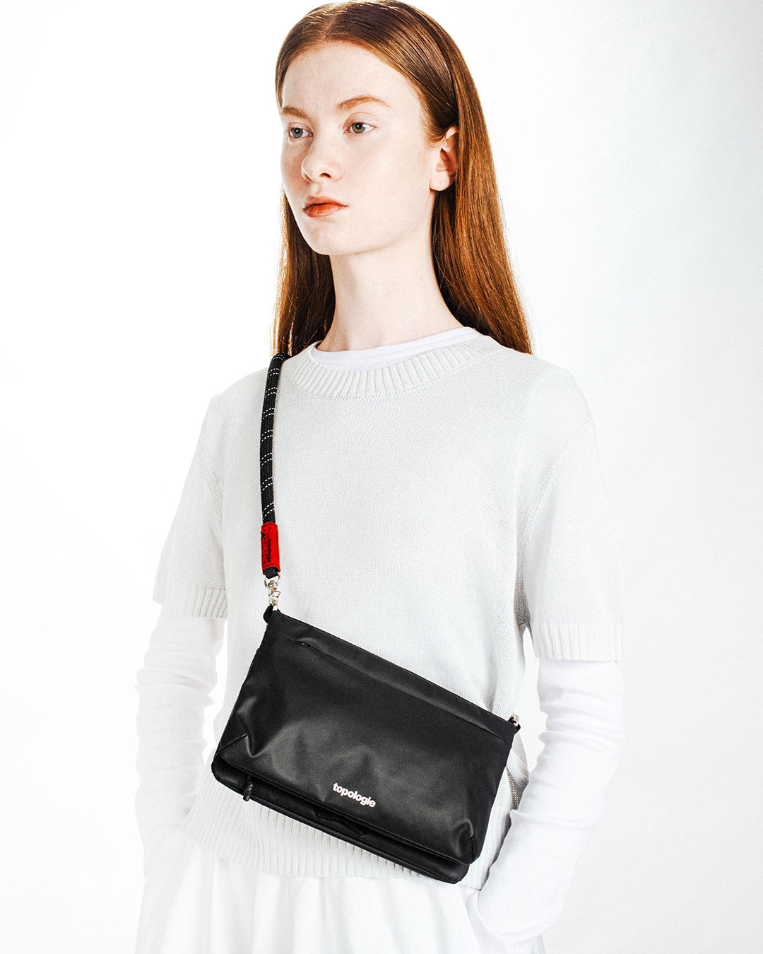 - Flache Sacoche aus recyceltem Polyester mit PU-Coating