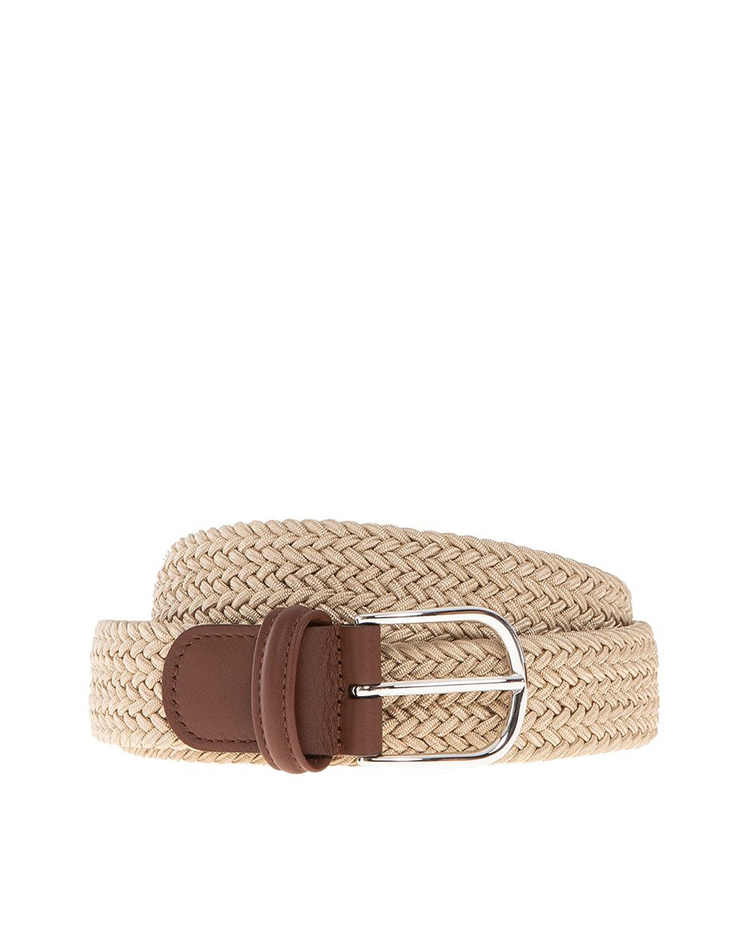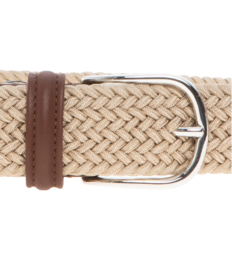 Woven Textile Belt, Ecru/ Brown Leather