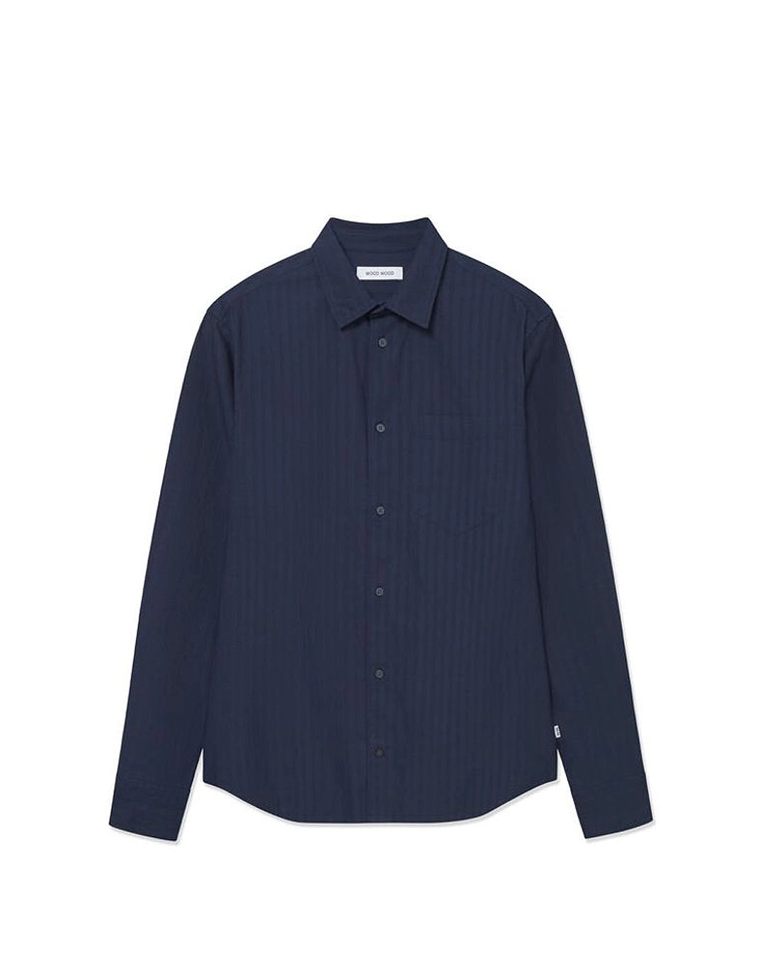 Das WWNico Shirt in Salute Stripe von Wood Wood aus  Bio-Baumwolle überzeugt mit klassischem Hemdkragen, Knopfleiste und praktischer Brusttasche. Komfortabel, zeitlos und ready für jeden Tag.