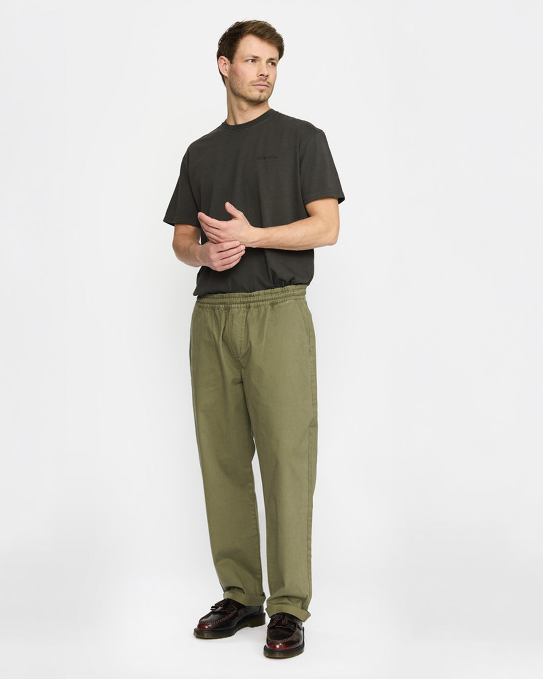 Die 5871 Casual Trousers von Revolution ist aus 99% Bio-Baumwolle mit 1% Elasthan hergestellt, für maximalen Komfort und Bewegungsfreiheit. Der elastische Bund mit verdecktem Kordelzug sitzt perfekt, während drei Seitentaschen (eine mit Reissverschluss) und zwei Gesässtaschen praktischen Stauraum bieten. Das lockere Loose-Fit-Design lässt sich ganz nach Laune umschlagen, für einen coolen Cropped Look, wann immer dir danach ist. Nachhaltigkeit trifft auf Flexibilität.