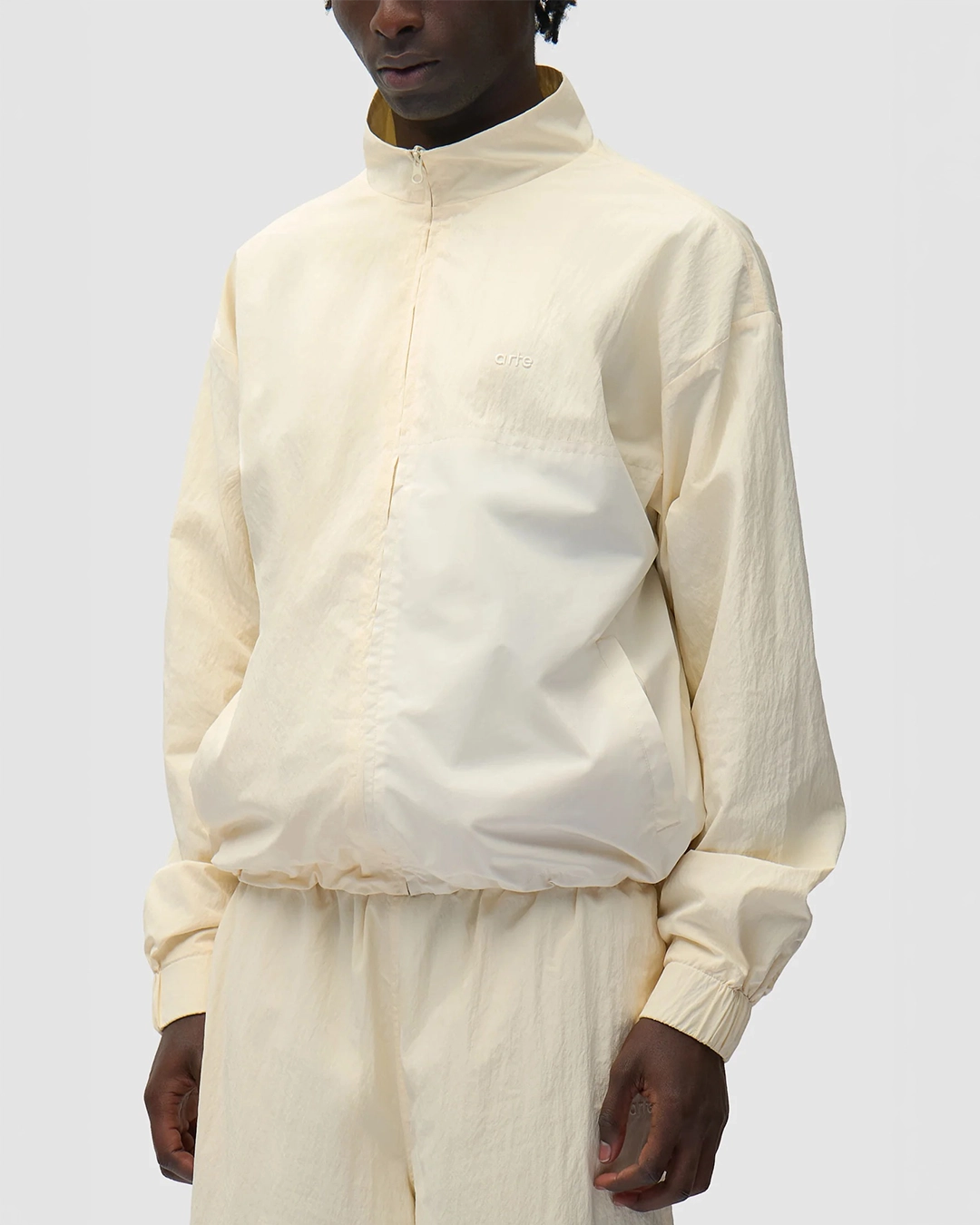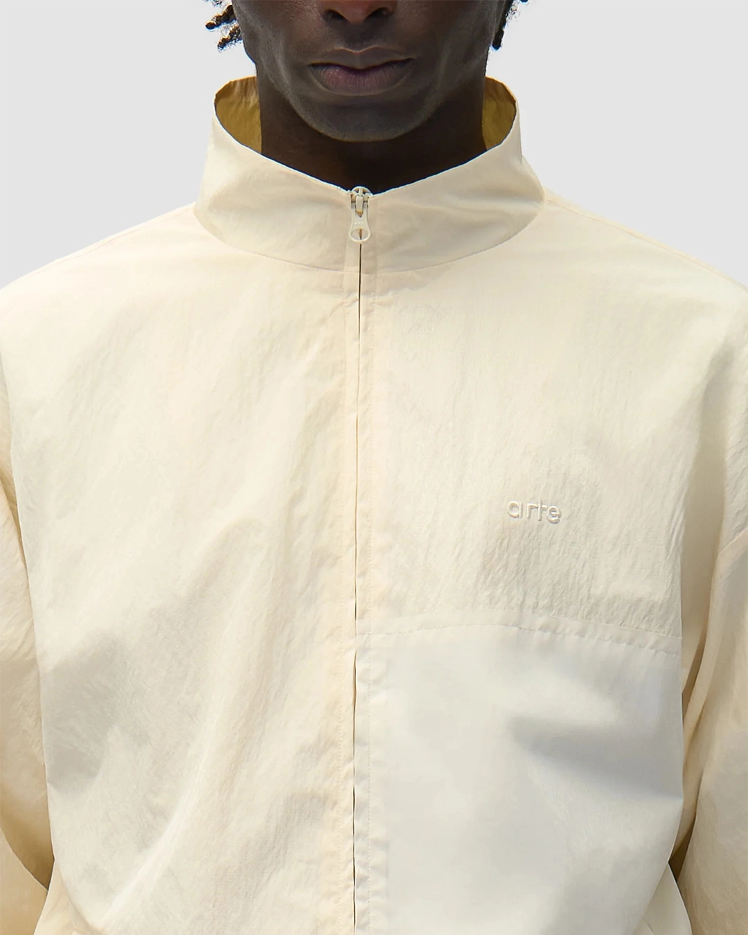 Entdecke die Squared Track Jacket von Arte Antwerp in Cream mit strukturiertem Gewebe für Langlebigkeit und modernen Look. Klassischer Stehkragen und durchgehender Reissverschluss für einfaches An- und Ausziehen. Die Arte Antwerp Logo-Stickerei auf der Brust unterstreicht die Premium-Qualität. Ein vielseitiges Essential für jeden Kleiderschrank.