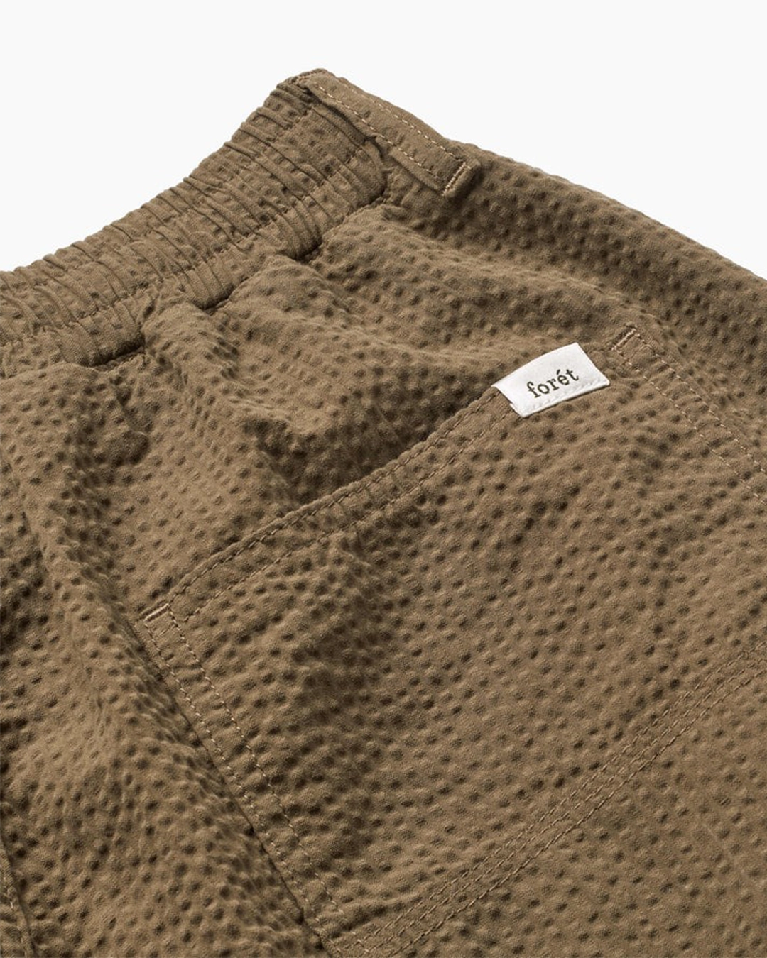 Bequeme Seersucker-Hosen in Stone von Forét. Der elastische Bund sorgt für perfekte Passform und Tragekomfort. Praktische Seitentaschen und Gesässtaschen bieten Stauraum für deine wichtigen Essentials. Nachhaltig langlebig und vielseitig kombinierbar für den Sommer.