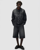 Round Pocket Denim Short, Fade Black