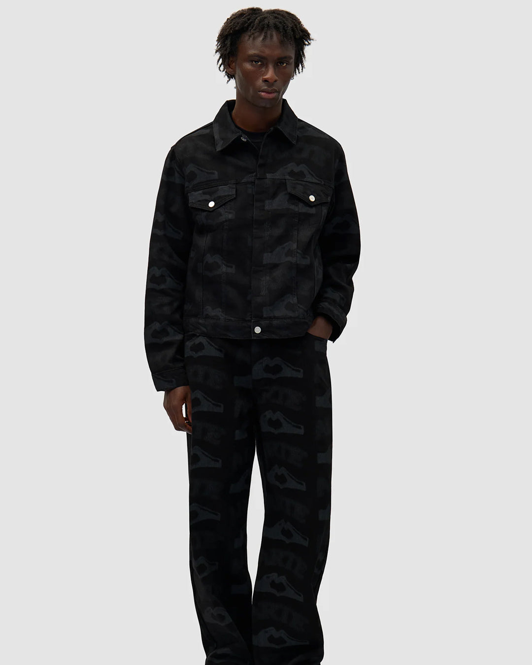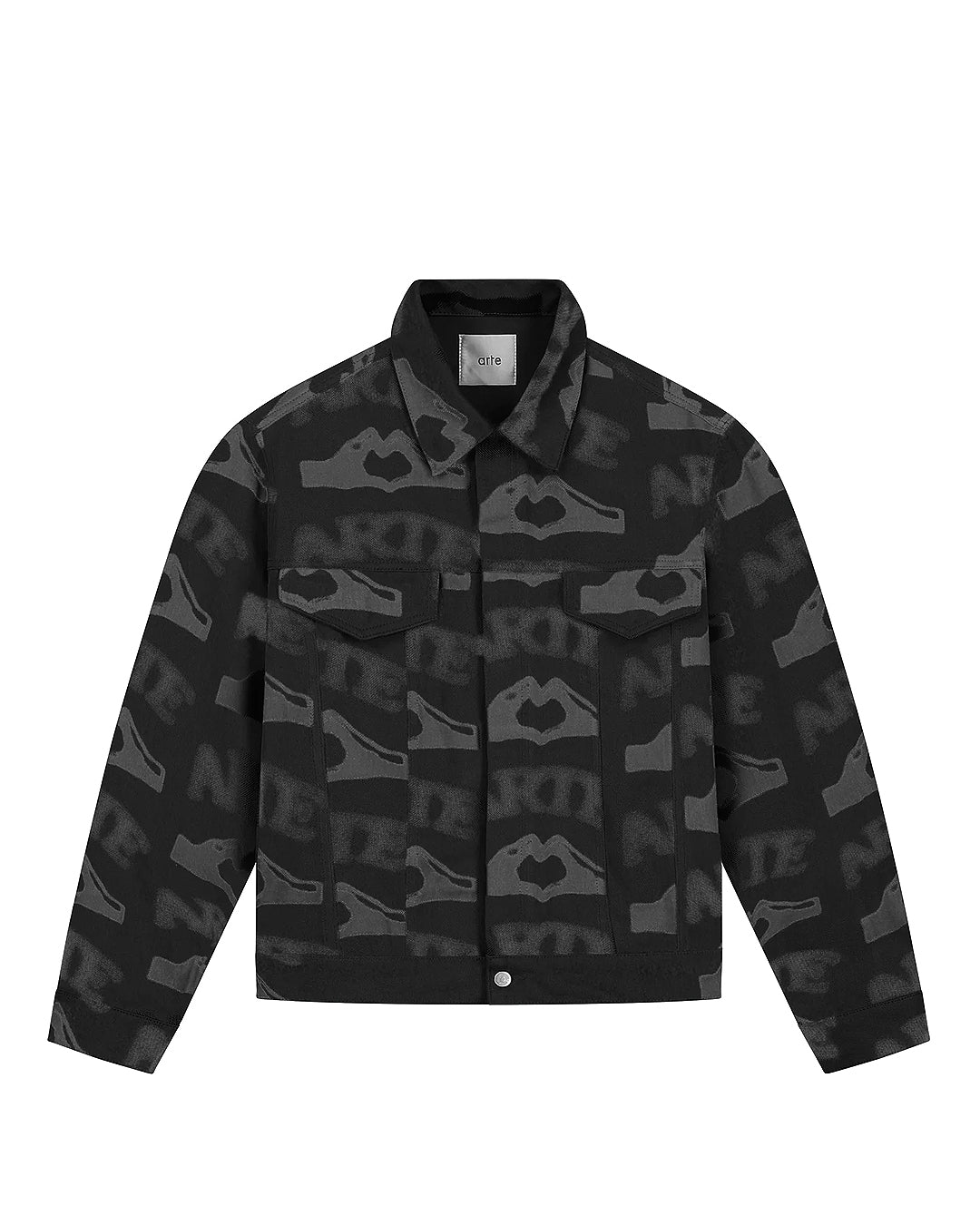 Heart Printed Jacket, Black