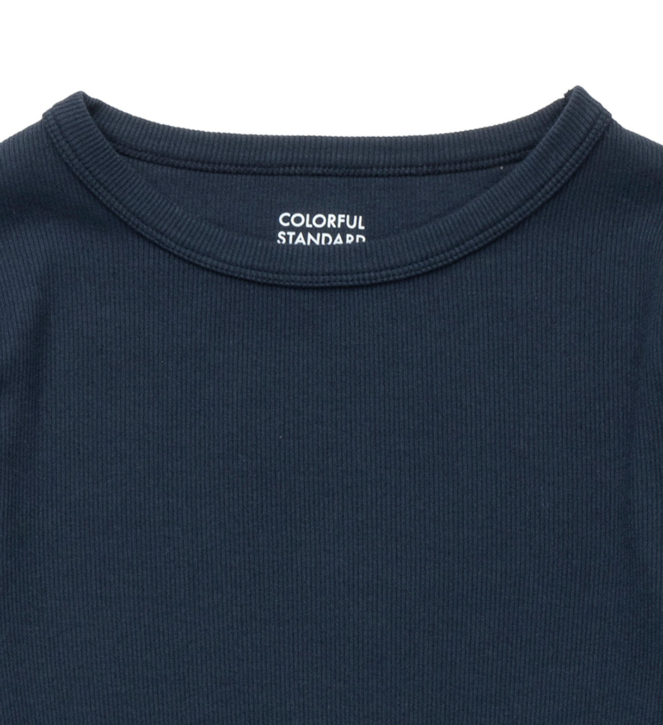 W Organic Rib LS T-Shirt, Navy Blue