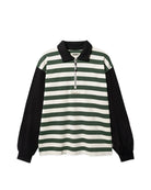 WBHiro L/S Stripe Zip Polo, Pine Green