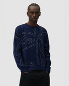 Das Allover Circle Logo Knit in Navy ist ein zeitloses Piece aus Baumwolle, das Komfort und Stil vereint. Der klassische Rundhalsausschnitt und die langen Ärmel machen diesen Pullover zur perfekten Wahl für jeden Tag. Das durchgehende Arte Antwerp Logo-Muster verleiht ihm eine charakteristische Note und zeigt Liebe zum Design.